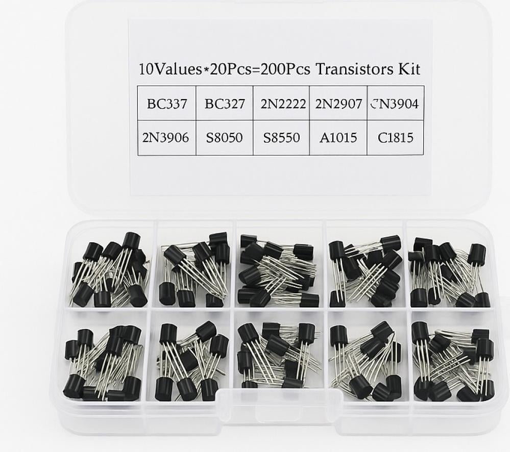200pcs-10Values-Box The models are as follows : BC327 BC337 2N2222 2N2907 2N3904 2N3906 S8050 S8550 A1015 C1815 20 PCS each