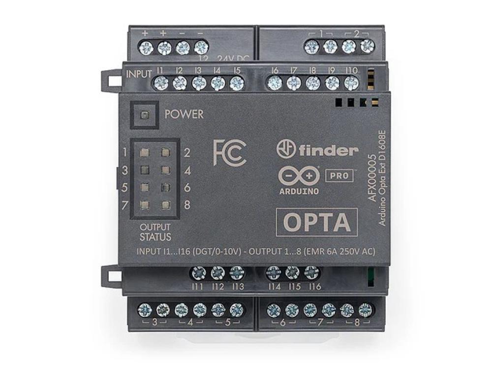 يُحسّن rduino Pro Opta Ext D1608E تطبيقات التحكم والمراقبة والصيانة التنبؤية في الوقت الفعلي للوحة Arduino Opta، وذلك بإضافة 16 مدخل جهد قابل للبرمجة و8 مرحلات كهروميكانيكية 250 فولت تيار متردد 6 أمبير لتشغيل أجهزتك.