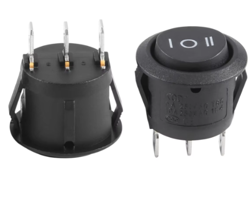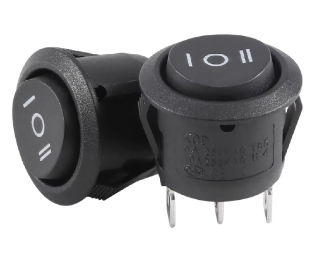 نوع التلامس أحادي القطب مزدوج الرمي (SPDT) ، أطراف طرفية ثلاثية الدبوس ، تشغيل/إيقاف/على ثلاثة وضعية ، مفتاح هزاز دائري إضافي.