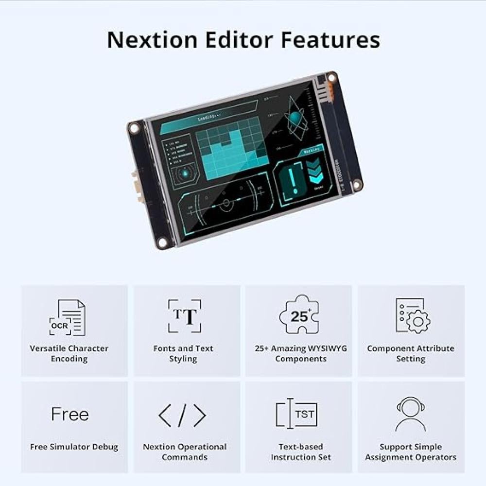 من السهل تكييف Nextion family HMI مع المشاريع القائمة ، فأنت تحتاج فقط إلى تزويدها بواجهة UART.