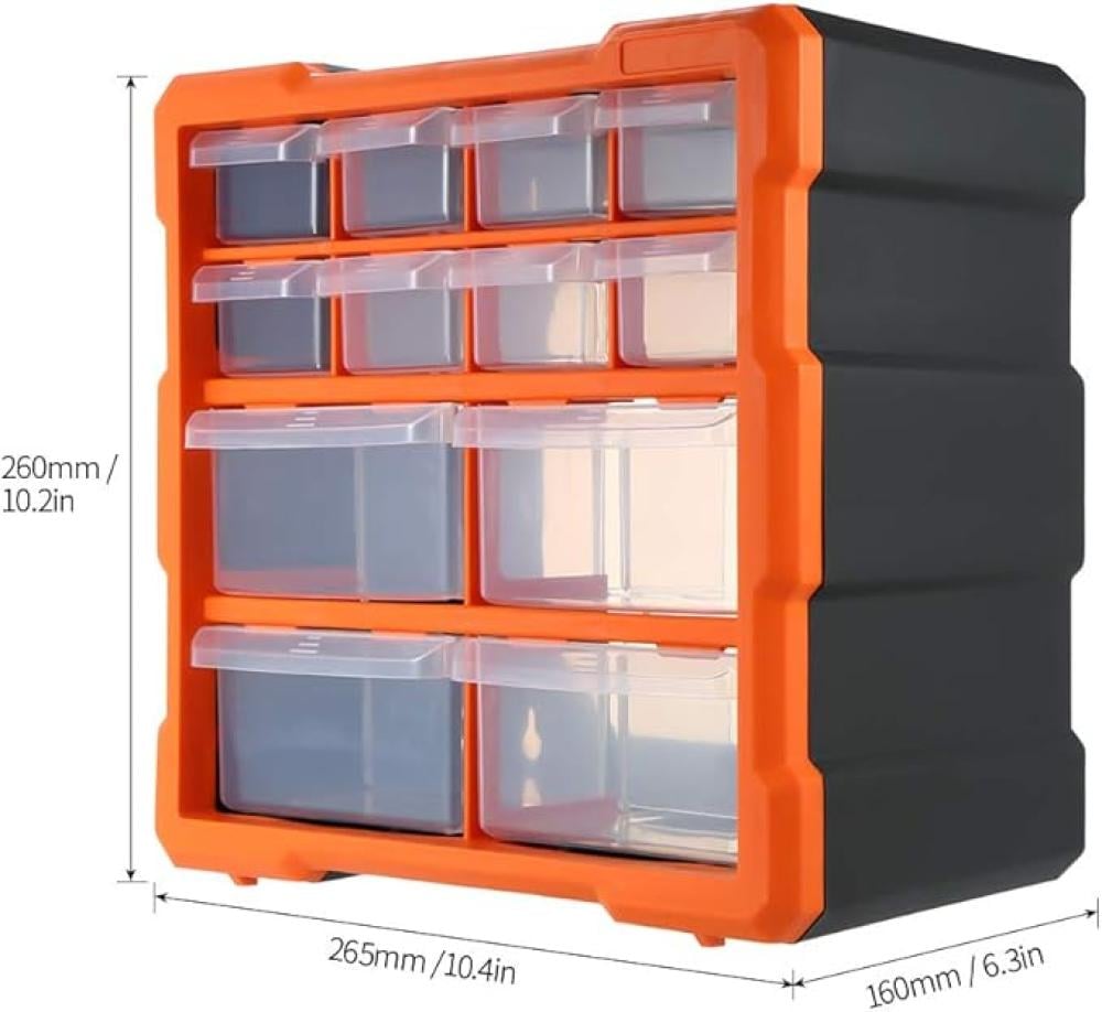 صندوق تخزين متعدد الصناديق بدرج واجزاء بلاستيكية لتخزين الاجهزة والادوات الحرفية، 12 مقصورة