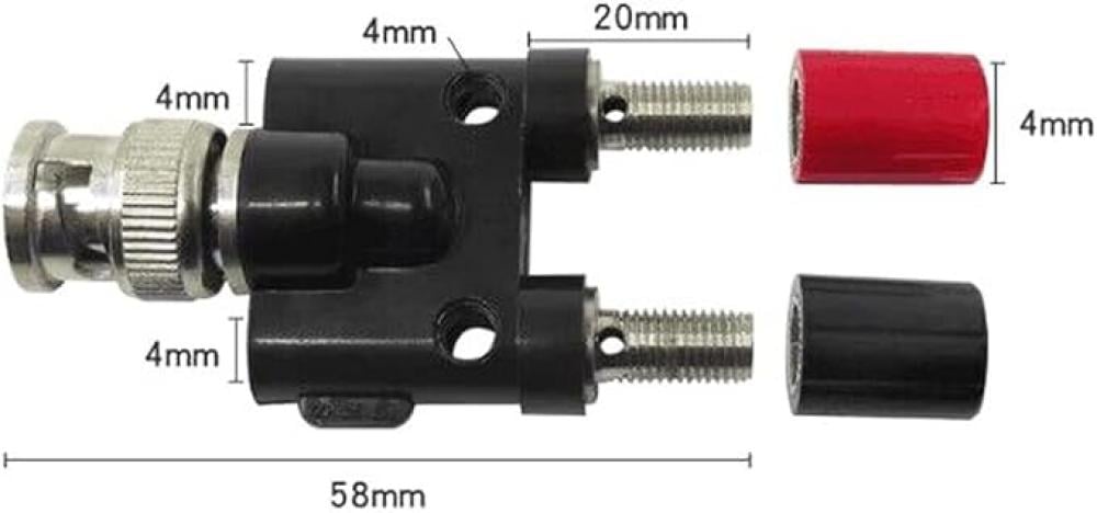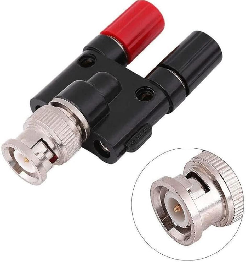 4. موصل BNC ذكر إلى موصل موزة أنثى لعمود الربط. 2. تسهل أعمدة الربط توصيل أسلاك الاختبار أو المكونات الإضافية.