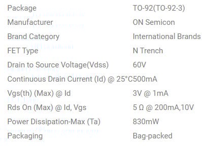 1- الجهد الذي يمكن تحمله (Drain-Source Voltage): 60 فولت.