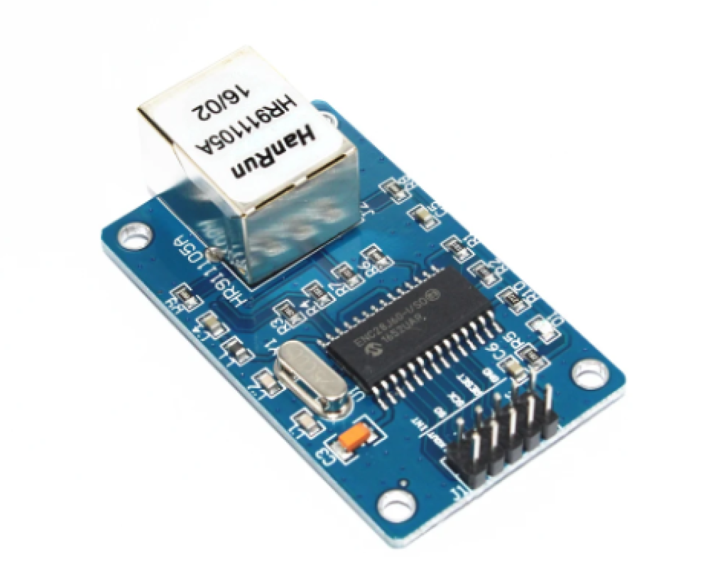 إن وحدة ENC28J60 Ethernet هي لوحة تحتوي على منفذ Ethernet وتحول إدخال Ethernet إلى SPI. تعتمد اللوحة على الدائرة المتكاملة ENC28J60 الخاصة بشريحة Microchip ويمكن استخدامها لتوفير اتصال بالإنترنت لأنظمة التحكم الدقيقة مثل لوحات Arduino عبر الإيثرنت.