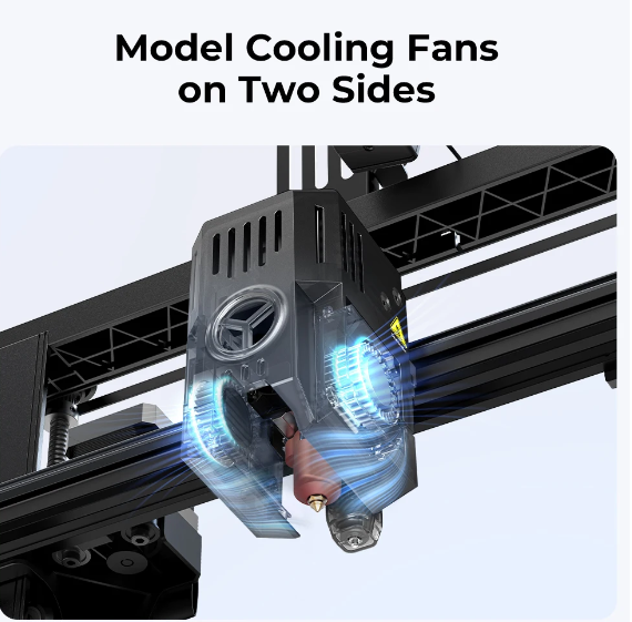 يحتوي كل جانب من رأس الطباعة على مروحة تبريد نموذجية لتبريد النموذج بسرعة