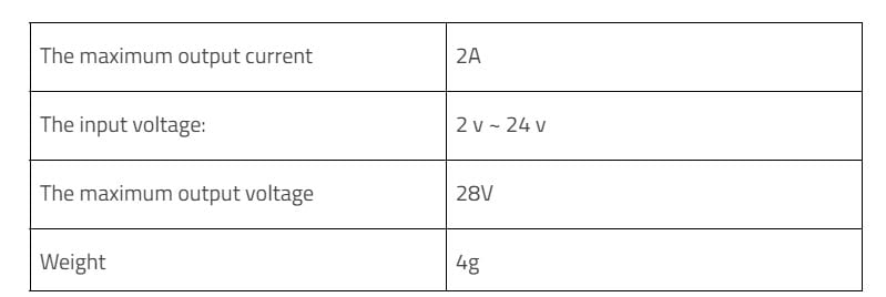 يمكن لمحول التعزيز تحويل 2V ~ 24V DC إلى أقصى 28V DC، ويمكن تعديل جهد الخرج بمقياس الإمكانات