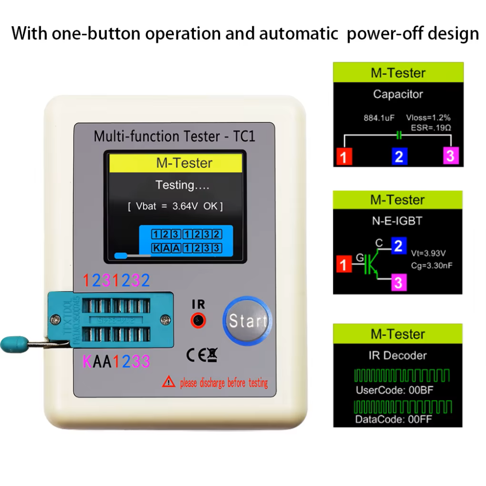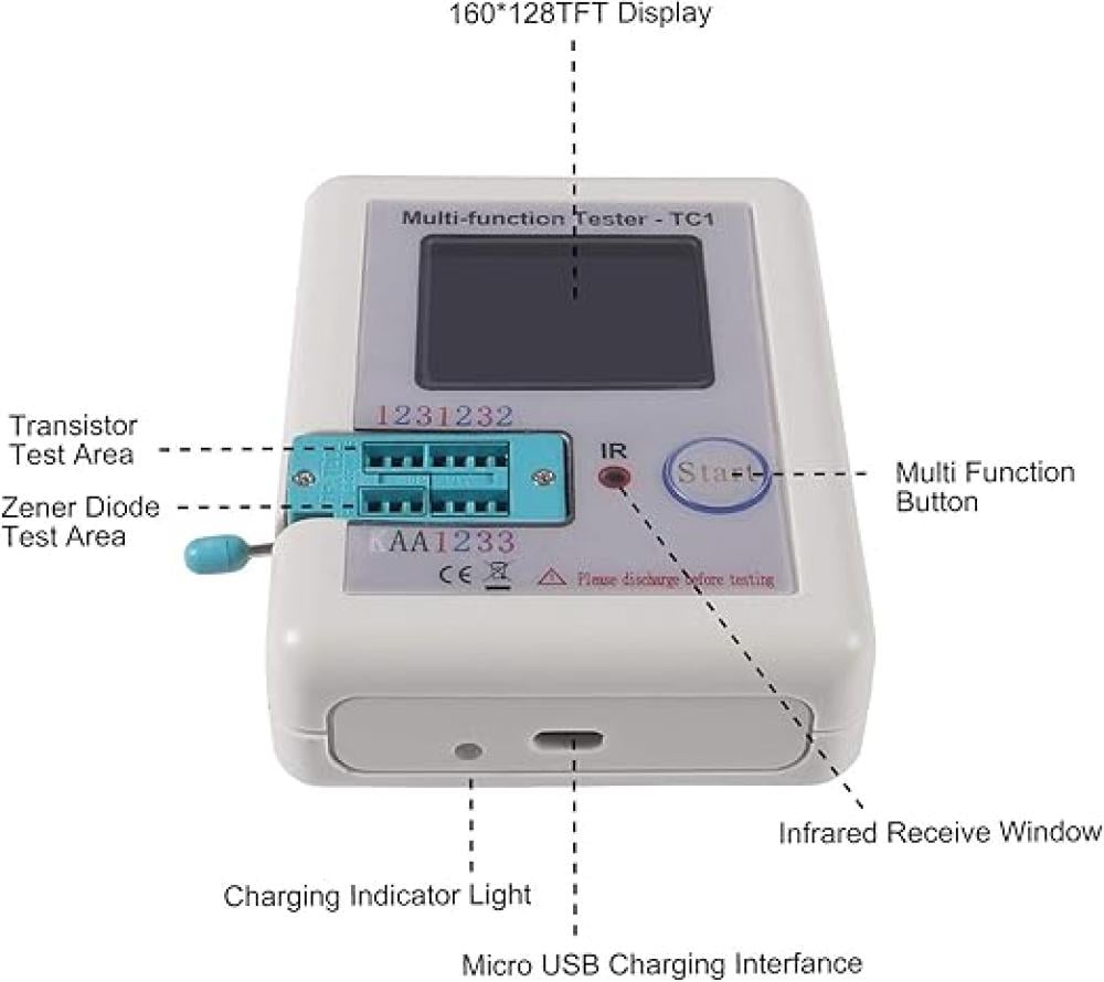 جهاز اختبار العناصر هو أداة متعددة الوظائف تتميز بشاشة ملونة TFT بحجم 1.8 بوصة، مما يجعل قراءة النتائج سهلة وواضحة. يُستخدم هذا الجهاز لاختبار مجموعة واسعة من المكونات الإلكترونية، بما في ذلك: